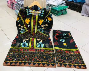 Black Multicolor Ethnic Printed 2-Piece Suit