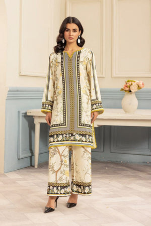 Yellow & White Floral Printed 2-Piece Suit
