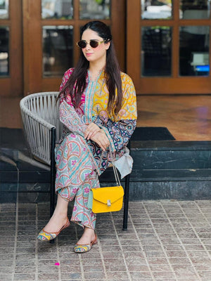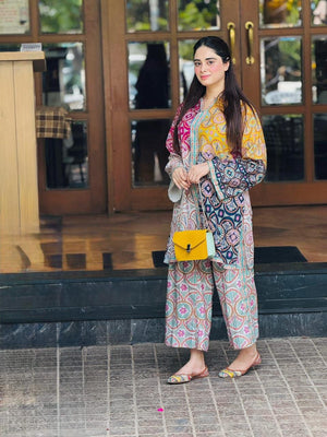 Beautiful🌹 Digital🎨 Print Shirt👚With Digital Print Bell Bottom👖