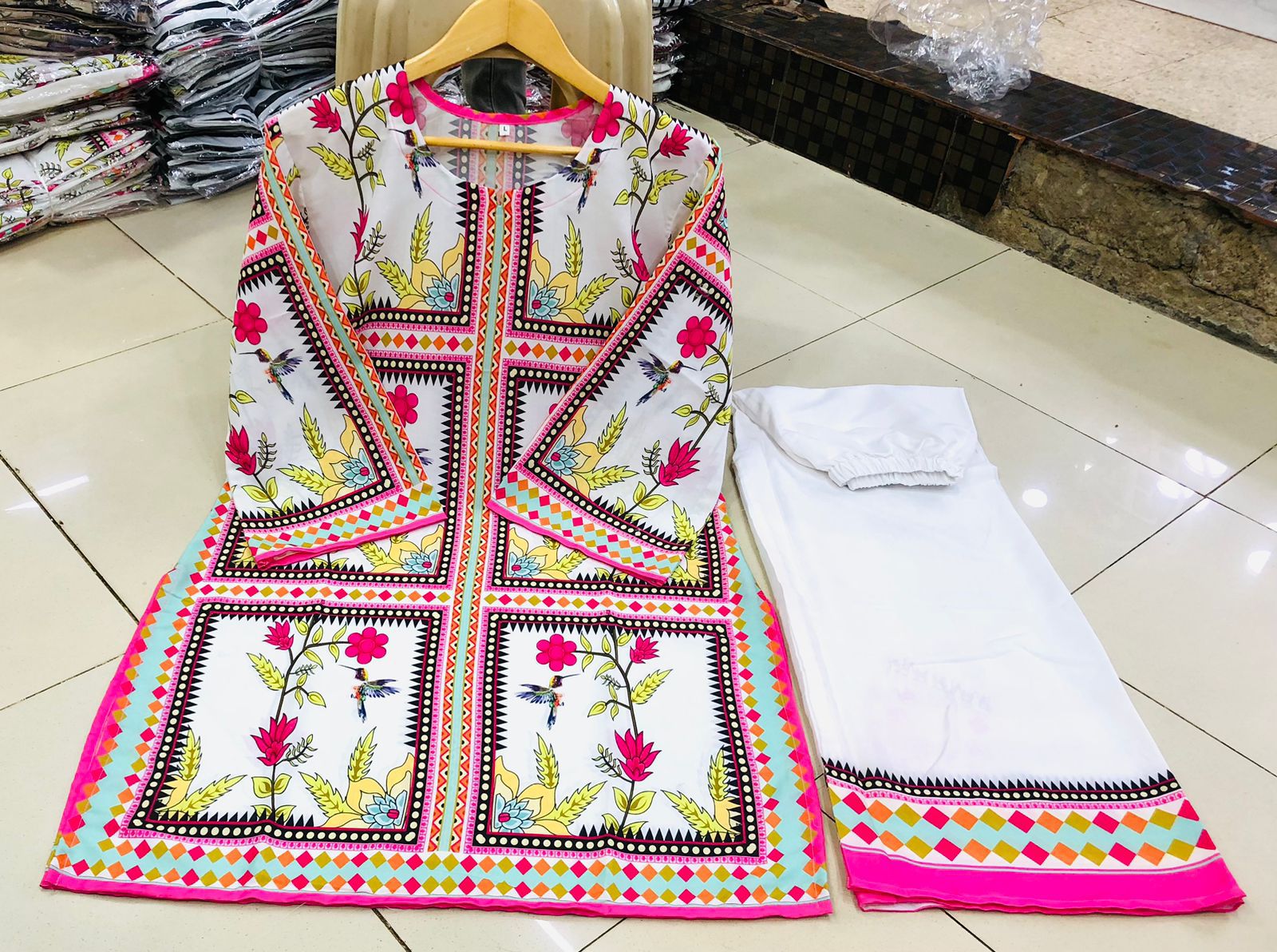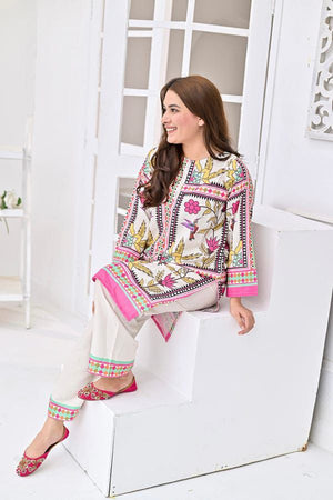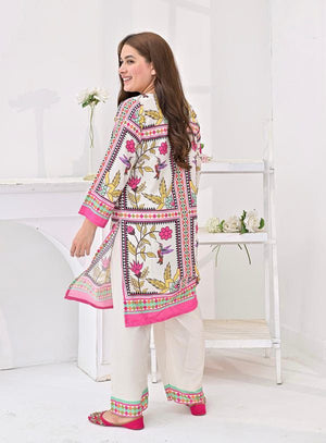 White & Pink Floral Block Printed 2-Piece Suit