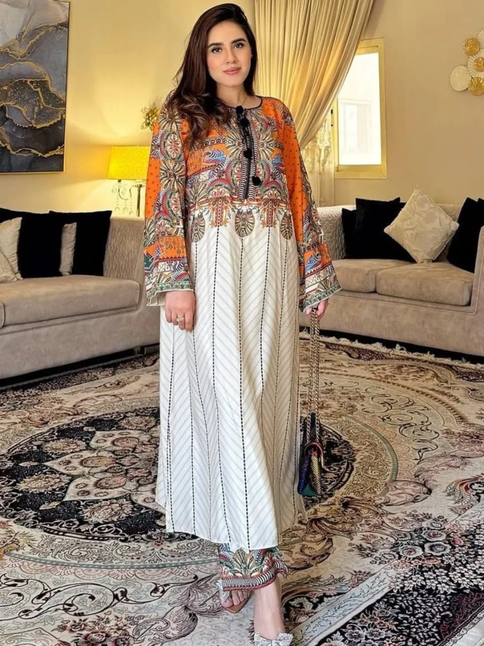 Long Digital Printed Shirt With Bell Bottom Trouser