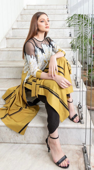 Mustard & Black Modern Long Maxi Dress