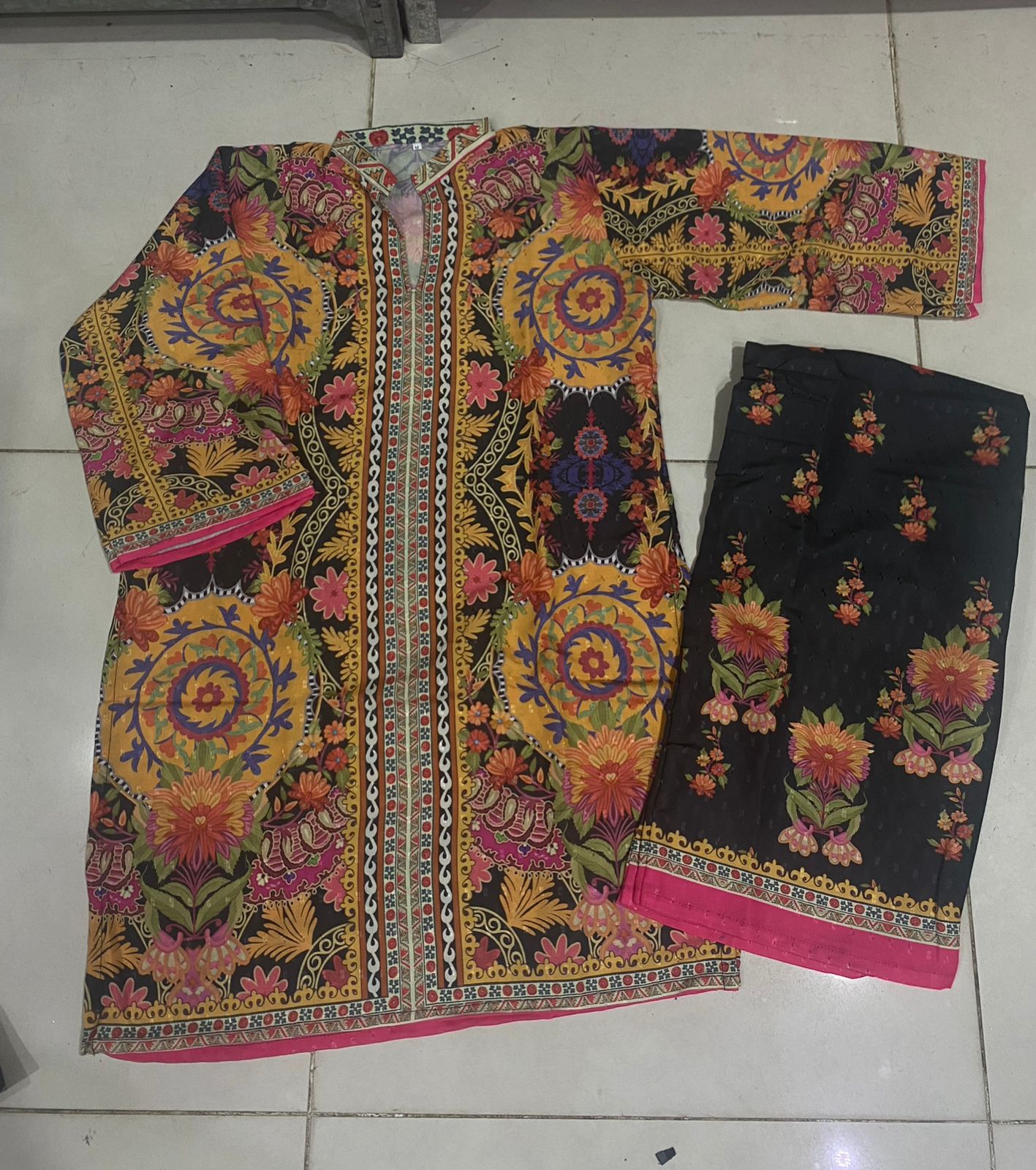 Black & Multicolor Festive Printed 2-Piece Suit