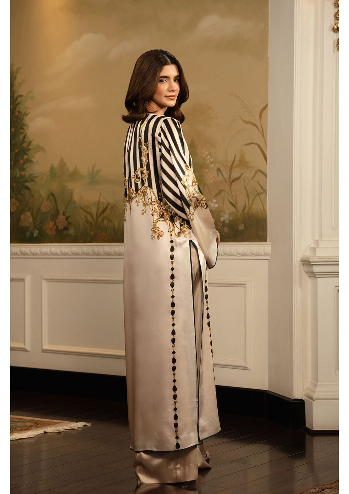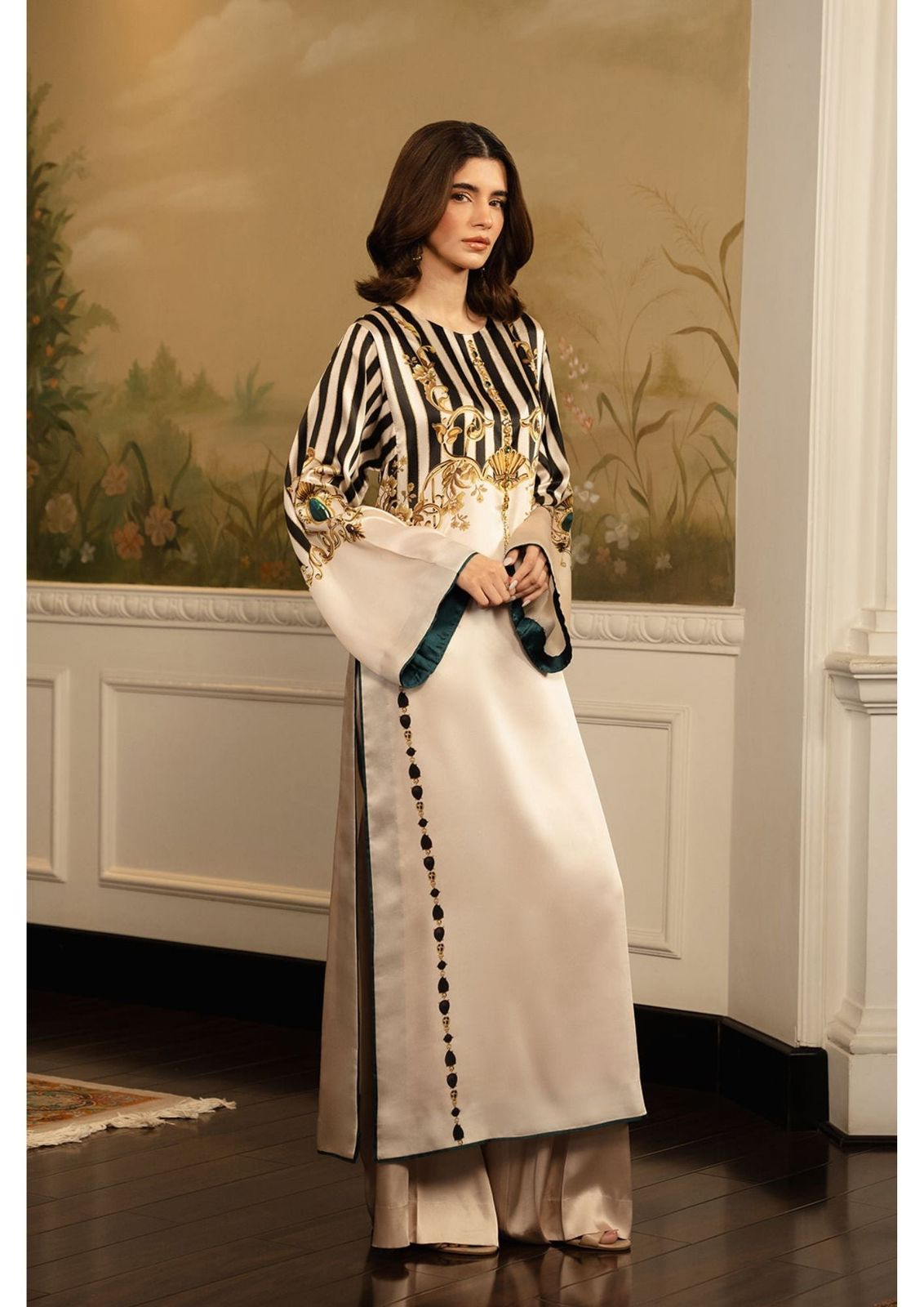 Black & Gold Striped Long Dress