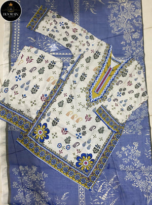 Beautiful🌹 Digital🎨 Print Shirt👚 & Dupatta Digital Print Bell Bottom👖